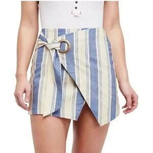 Free People Mini Wrap Skirt 28" Waist White Blue Stripe Nautical Linen Blend