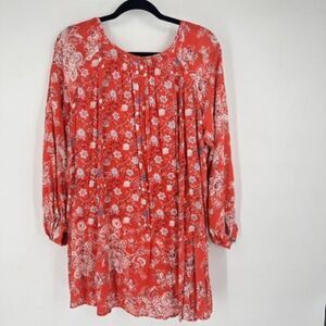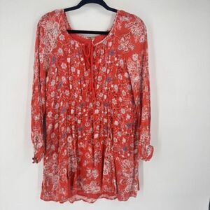 Free People Mini Dress Lucky Loosey Floral Blood Orange Red Size XS Bohemian