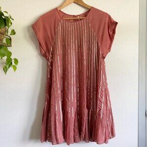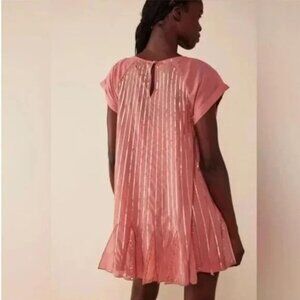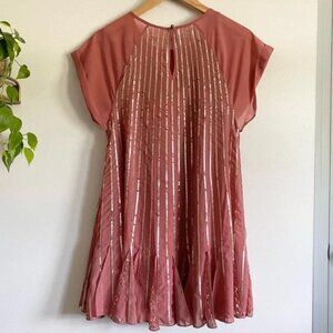 The perfect playful mini, this billowy dress is featured in a shapeless silhouette and sequin-adorned design with a subtle scoop neckline and ruffled bottom hem.
