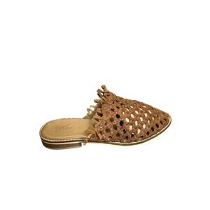 Elevate your laid-back look with these Free People Mirage Woven Mules. Crafted from genuine leather in a rich brown tone, these artisan-style slides feature an intricate handwoven design with fringe details. Comfortable, breathable, and effortlessly boho, they pair beautifully with denim, flowy skirts, or linen sets. Size EU 39 (fits like US 8.5-9). Some wear to soles, but lots of life left—see photos for condition.