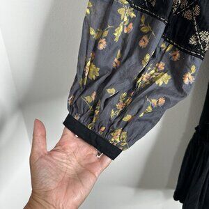 Free People Mix It Up Black Tunic Dress Large Boho Floral Balloon Sleeve