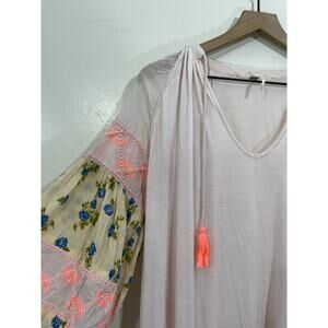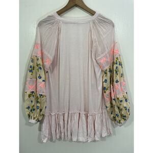 Free People Mix It Up Mini Peasant Dress XS Boho Whimsical Fairy Maximalist Y2K Romantic Eclectic Artsy Flowy Lagom Festival Tassel Ruffled Hem Prairie Doll Pink.