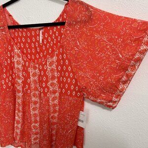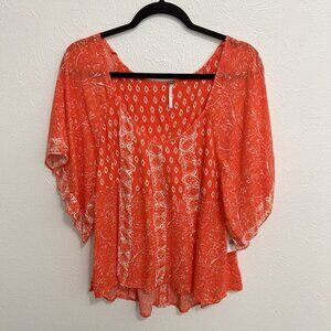 Free People Mixed Bandana Print Blouse Top Grapefruit Pink Flowy Boho Size M