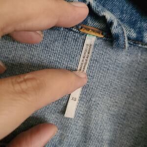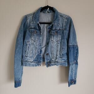 Free People Mixed Indigo Cropped Button Front Jean Jacket Size X-small