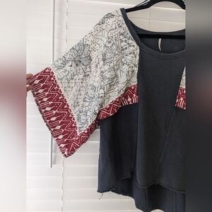 Free People Mixed Media Tribal/Aztec Tunic Top Size Small