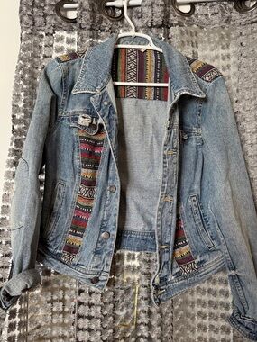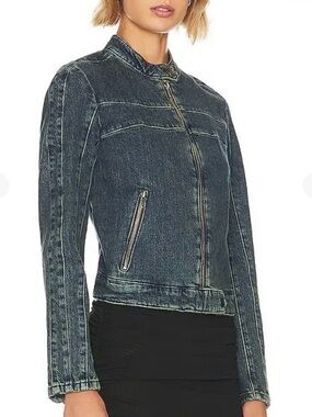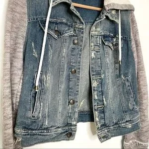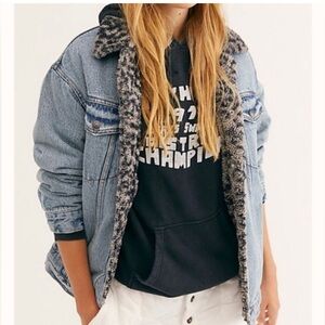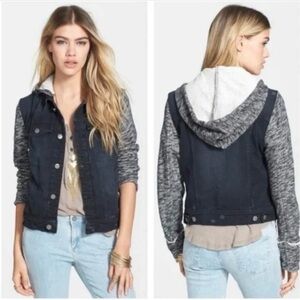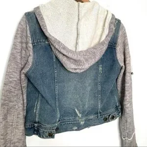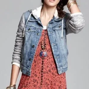 Free People brings 1990s flair to the modern day with a shrunken fit on this mixed-media jacket. Size S. 18” armpit to armpit. 20” length. Hood is detachable!