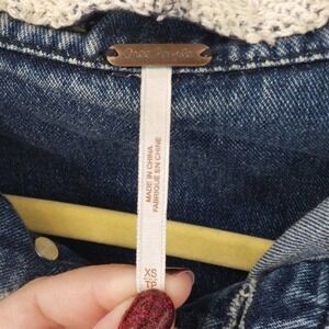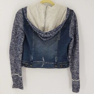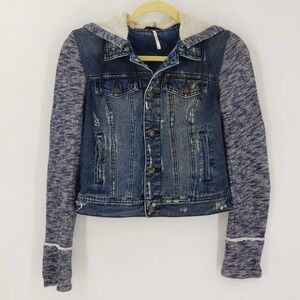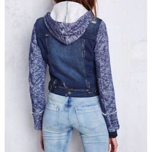 Free People Mixed Media Space Dye Knit Hooded Denim Jean Jacket Blue Size XS