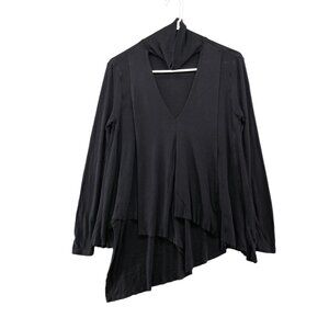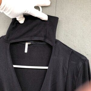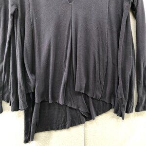 Free People Black Cut Out Mock Neck Asymmetric Ribbed Long Sleeve Drapey Top XS