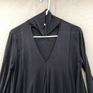 Free People Mock Neck Tunic Top XS Relaxed Jersey Knit Cut Out Asymmetric