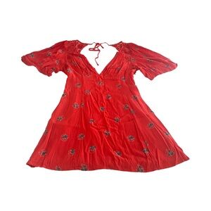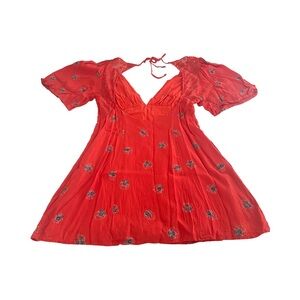 Free People Mockingbird Coral Red Floral Print Backless Mini Dress Size 10