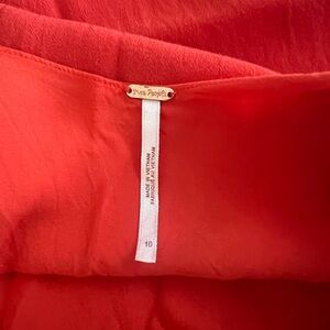 Free People Mockingbird Coral Red Floral Print Backless Mini Dress Size 10. Excellent pre-owned Condition, No flaws to note. Approximate Measurements Laying Flat