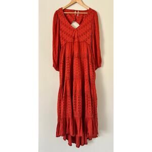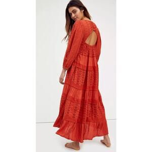Free People Mockingbird Maxi Women's Dress Summer A-Line Small Eyelet Orange Red