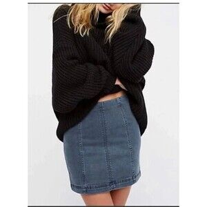 Free People Modern Femme Denim Mini Skirt Very Stretchy Blue Zip Closure Size 8