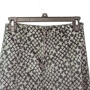 Features: floral pattern, diamond, pattern mini jean skirt, stretchy fit, exposed seam detail, back zip closure, form fitting silhouette, high rise waist, 53% cotton, viscose, polyester, elastane, diamond, diamonds