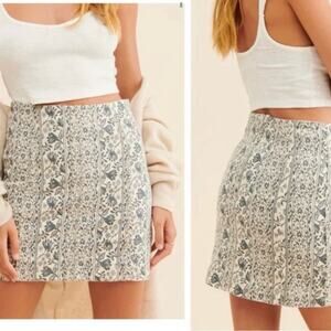 Free People Modern Femme Novelty A-Line Skirt in Neutral Floral Bohemian size 6