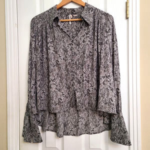 Free People Modern Muse Snakeskin Oversized High Low Long Sleeve Top Size S