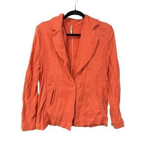 Free People Modern Summer Button Textured Blazer Short Pocket Top Small S