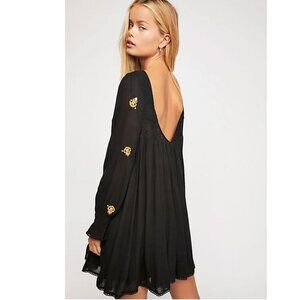 Free People | Mohave Floral Black Embroidered Boho Swing Dress Sz. M