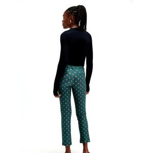Free People Molly Printed Slim Pants Emerald Combo Polka Dots 12