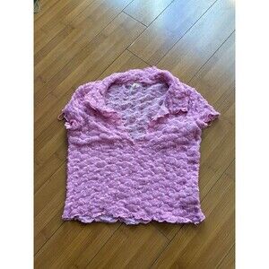 Free People Molly Tee Textured Pink Crop Polyester Stretch XS