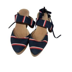 Free People Monaco Navy Stripe Ankle Strap Clogs Shoes EUR 40 US 9.5/10