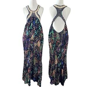 Free People Monarch Maxi Dress Size Large Bohemian Crochet 70s Goddess Halter
