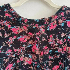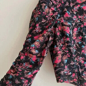 Free People Monica Top, Floral Open Back Puff Sleeve Cinched Waist Blouse Med