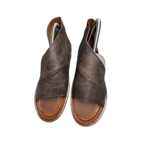 Free People Mont Blanc Gray Leather SlipOn D’Orsay Sandal Sz 8.5 39 Boho Chic EC
