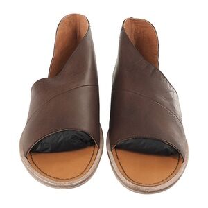 Made with the Finest Spanish Craftsmanship and Leather, this Open Toe Shoe Features Side Cutouts. Slight Stacked Heel.
