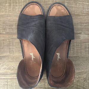 CONDITION: Fair used condition. Leather is faded and the soles are worn. Insoles have dirt stains from wear.