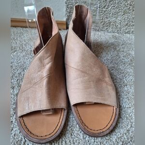Free People Mont Blanc Womens Tan Slip On Leather Sandal. Open rounded toe. Size 37.5 (7.5)