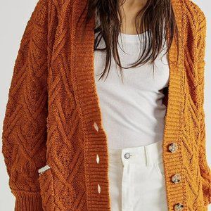 Brand new with tags - Free People Montana Cable Cardi Size Medium Pumpkin Pie color