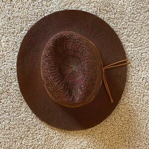 Top off your look with this gorgeous woven hat featured in a western-inspired style with a round brim and braided band around the crown. Dipped crown Lightweight syle Polyester