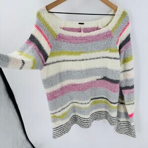 Free People Montmartre Pullover Striped Knit Boat Neck Wool Blend Size L Large
