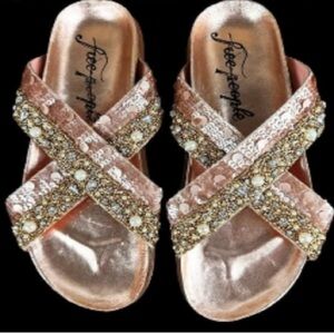 Free People Moon Child Embellished Slide Sandal Leather Rose Gold 37/ US size 7
