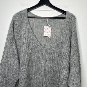 Free People Moonbeam Slouchy Ribbed Knit Long Sleeve V-Neck Pullover Sweater