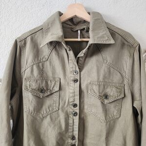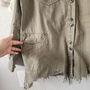Free People Moonchild Distress Sage Dress Longline Shacket Grunge Boho Chic M