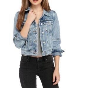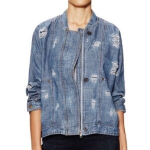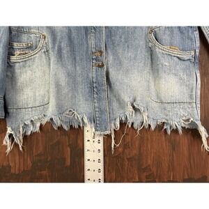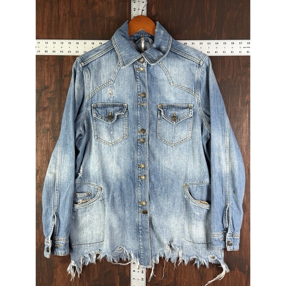 Free People Moonchild Distressed Denim Jacket Shirt Size XS Long Boho Spring
