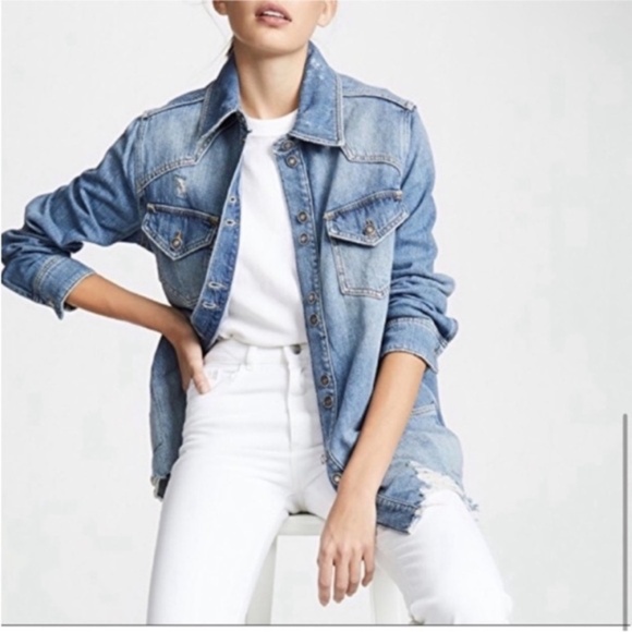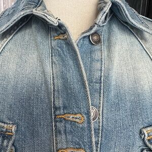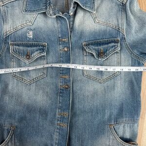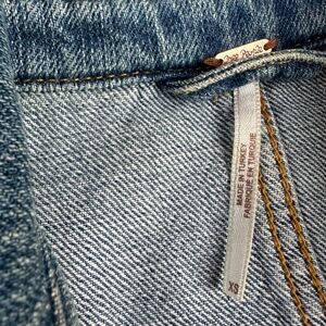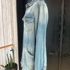 Free People - Moonchild Distressed Denim Long Shirt Jacket XS