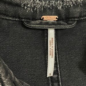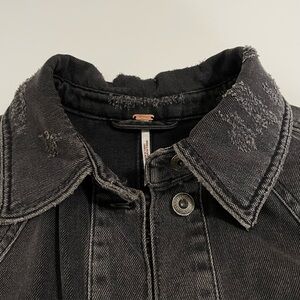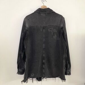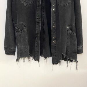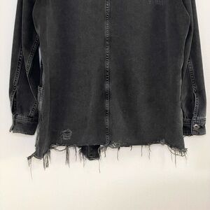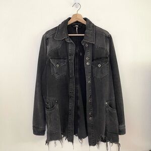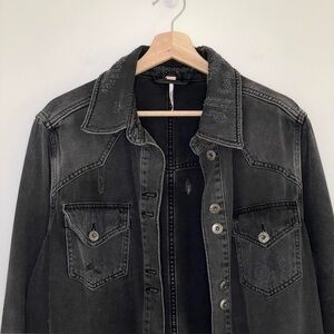 Free People Moonchild Distressed Denim Shirt Jacket in Moon Dust Washed Black, Womens Size Small. Generous sizing can also fit Medium, see measurements below.