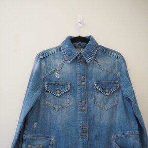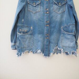 Free People Moonchild Distressed Oversized Denim Jean Shacket Shirt Jacket sz xs