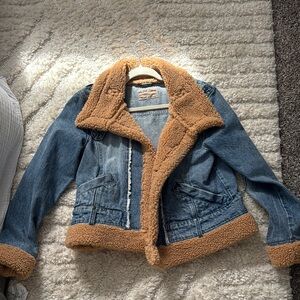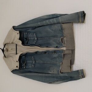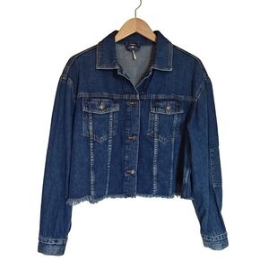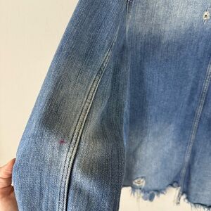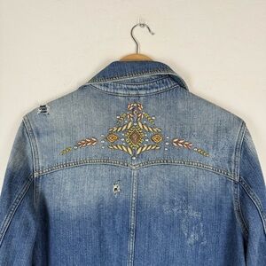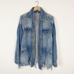 Free People Moonchild Embroidered Distressed Shirt Jean Jacket