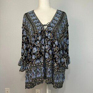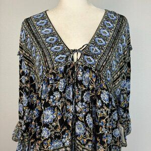 Free People Moonlight Dance Boho Tunic Top Multicolor Bell Sleeve Size XS