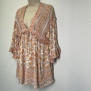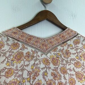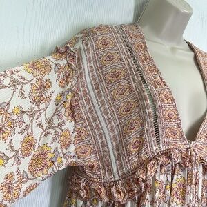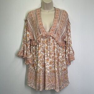 Free People - Moonlight Dance Floral V Neck Boho 3/4 Sleeve Blouse Size Small