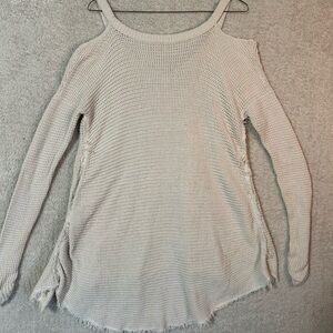 Free People Moonshine V Neck Sweater Top Size Medium Thermal Cream Oversized