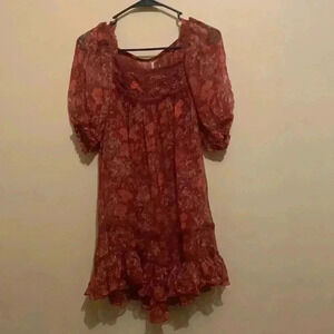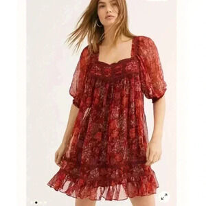 The sweetest tunic, designed in a gorgeous printed, crinkly fabrication featured in a square neckline with lace trim and embellished detail at chest in a babydoll-inspired silhouette.