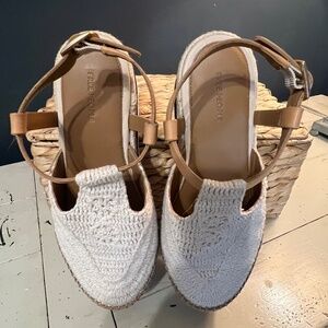 Showcase your free-spirited bohemian style wearing the Free People™ Morning In Mykonos Espadrille Flats. The low-top footwear features intricately woven crochet upper with buckle adjustable leather slingback strap and layered platform heels.