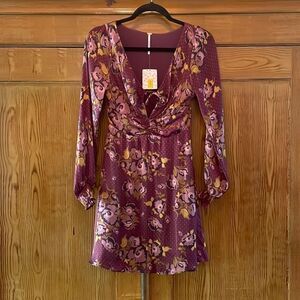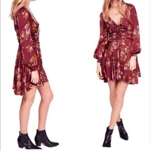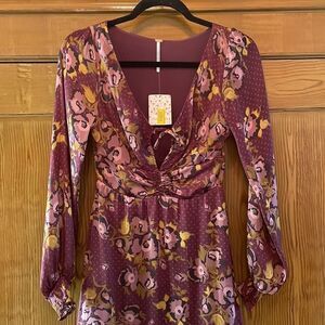 Free People Morning Light Floral Polka Dot Dress - Plum Size 2