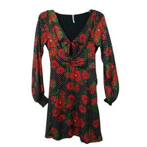 Free People Morning Light Floral Polka Dot Dress V-neck Ruched Long Sleeve Sz 0