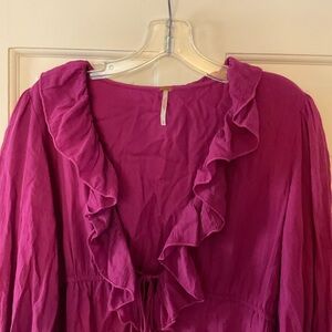 Free People Morning Light Mini Dress Purple Ruffled Tie V Neck Boho Size S